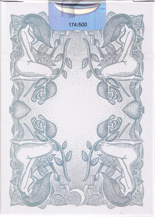 Blue Lagoon features blue color scheme deck. The tuck features the beautiful peacock and its feathers. The cards feature more beautiful artworks on the front side and full-length courts. The back design is a one-way, full bleed borderless artwork of feathers. Also, the cards are gilded in sapphire blue.