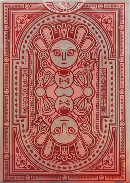 This is the remastered "Nutcracker" from KWP 2019 Subs. The deck's design is adjusted and the cards are printed in KWPCC - artworks adorned with metallic foil. The Sugar Plum Edition comes with a new color scheme that matches with the sweet vibe of the titular character of the Sugar Plum Fairy - the deck has the colors of red and pastel pink with metallic silver foil. The deck contains extras of two double backer cards. For this Gilded Variant, the cards are gilded with red metallic foil.