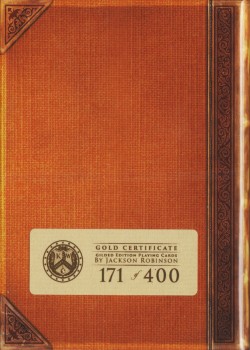 Designed and distributed by Jackson Robinson of the Kings Wild Project. The Gold Certificate Foil Limited deck is the March 2021 Kings Wild Shorts Limited subscription deck. As always, it is accompanied by the unlimited standard, and the limited gilded versions of the deck.
