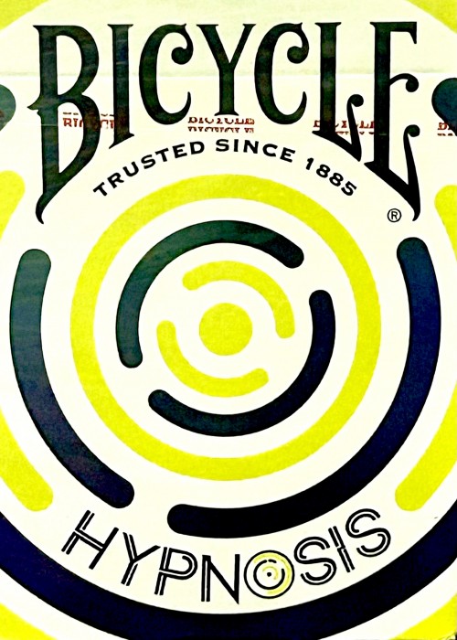 Hypnosis from Bicycle Playing Cards is a traditional playing card deck with standard faces, but the playing card back is specifically designed with the cardist in mind. With a borderless back design and hypnotizing, seamless graphics, the Hypnosis deck from Bicycle Playing Cards is sure to enhance the flow of flourishes, fans, spreads, and more. The tuck case of the Hypnosis deck from Bicycle Playing Cards features two high-contrast colors that indicate the colors on the card backs, with one of them in an eye-catching clear, holographic foil. The card faces are custom-colored and feature a graphic nod to the card back design. While the Hypnosis card backs are designed for cardists, the faces are standard faces, so the playing cards are perfect for playing favorite card games such as rummy, poker, hearts, and solitaire.