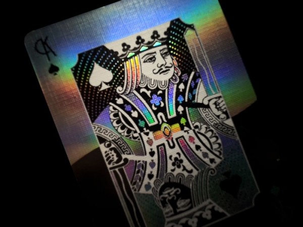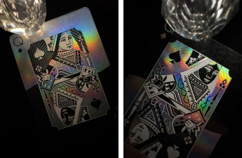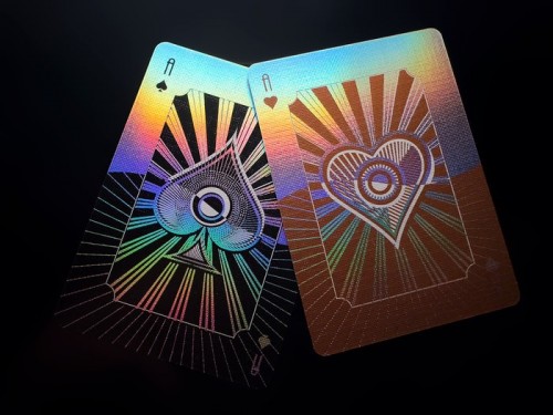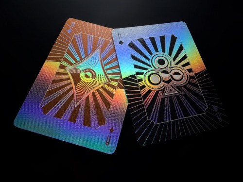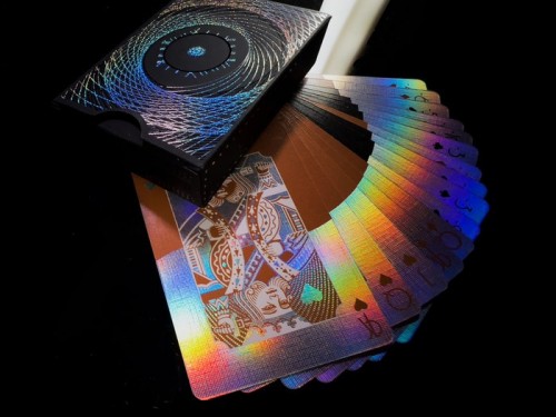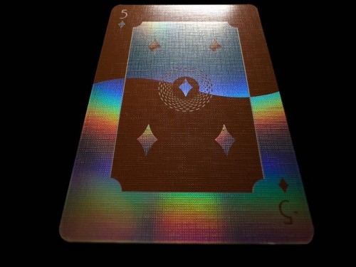 The true fun of the Zero Playing Cards deck comes out with the holographic foiling. Since Zero is the beginning and end of everything we know in creation, we thought a holographic foil would be the ideal representation of the theme through a foil that breaks the spectrum into its infinite constituent shades.