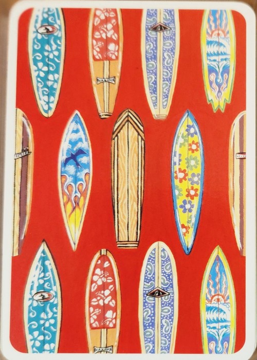 James Ernest's "Island Deck" is a six-suited deck of 54 cards, with each suit including Ace through Seven, plus King and Queen. The deck was developed for the game "Showboat," and can play many other games, including Powderkeg and Down the Well.