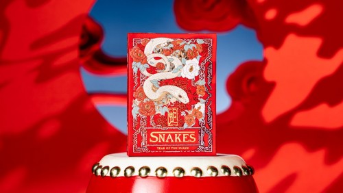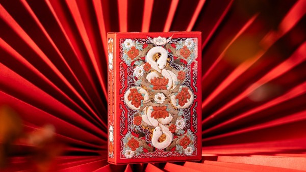 We use vibrant peony red as the main color tone, creating an atmosphere of celebration, enhanced with dazzling golden highlights. The elegant curves of the white snake, the intricate texture of its scales, and the delicate Foil patterns come together to add depth and richness to the design of the playing cards.