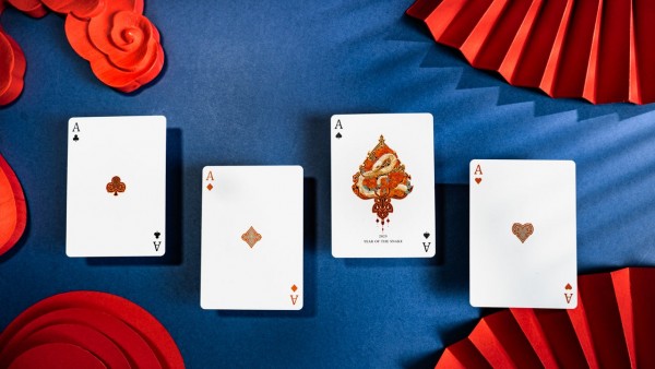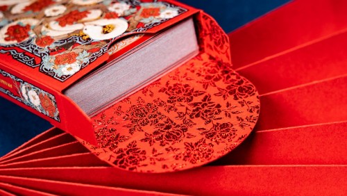 The court cards and pips have been custom-designed, incorporating Chinese knot elements, outlining unique patterns corresponding to each of the four suits.