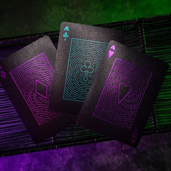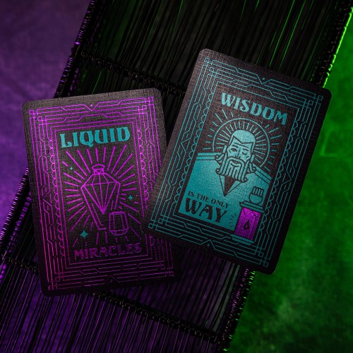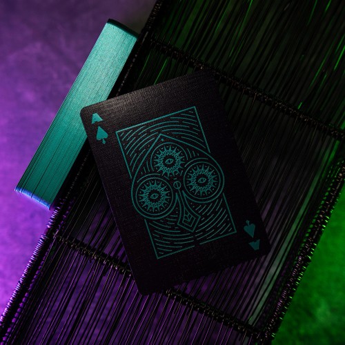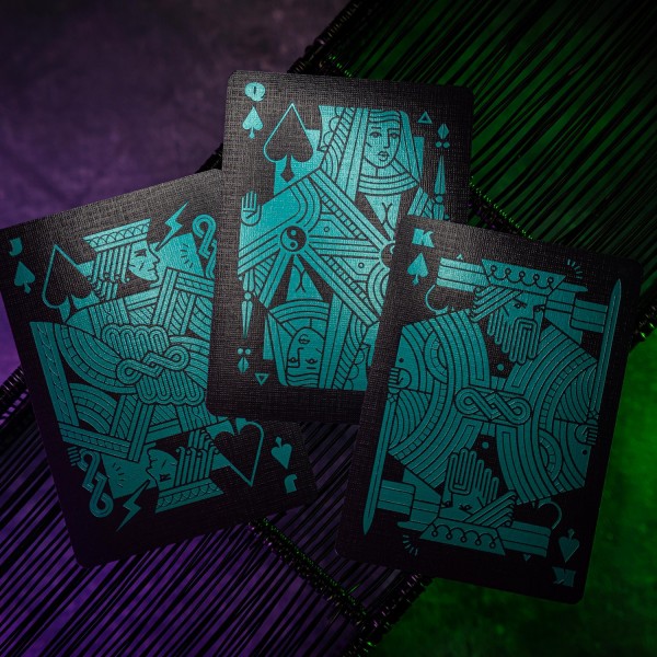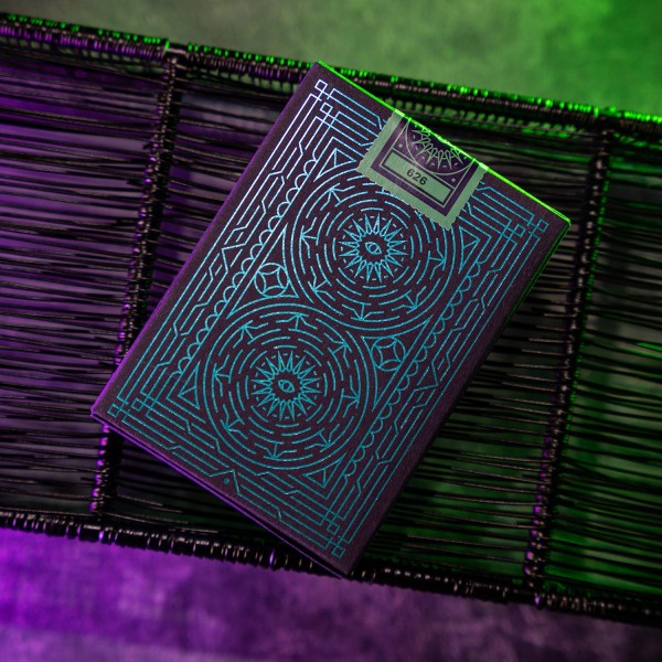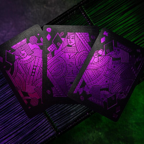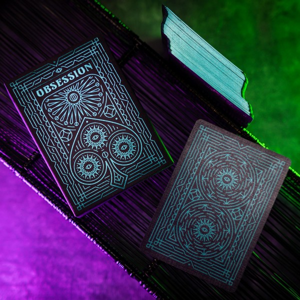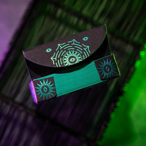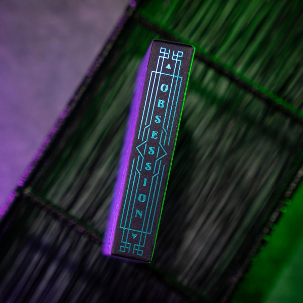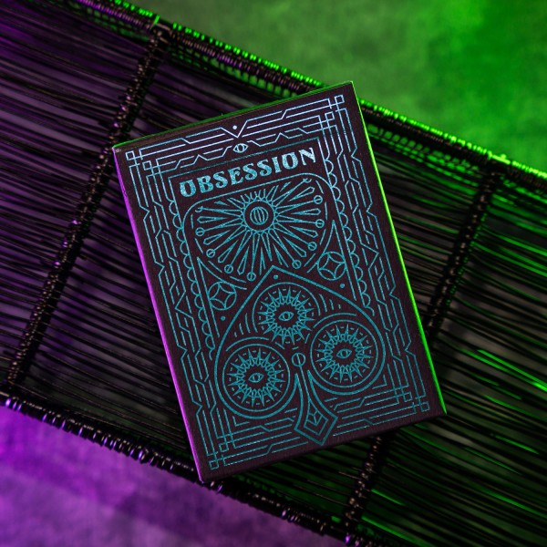 Obsession is a new playing cards project explicitly dedicated to a theme that lies at the heart of many of my creations. Rapture is the experimental of the series: while being simple, elegant, and perfect for play, this deck features a striking color palette and a tuckbox crafted from luxury paper with hot foil stamping. Specially, the cards ONLY have hot foiled stamping: no ink, just only metallic foil. Also, the cards are gilded in green metallic foil