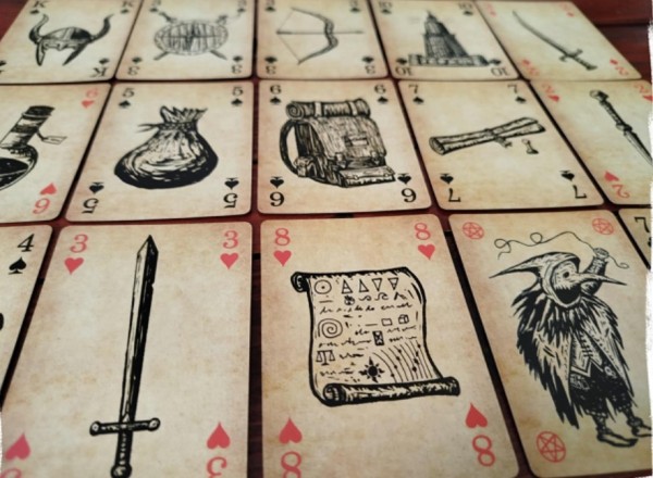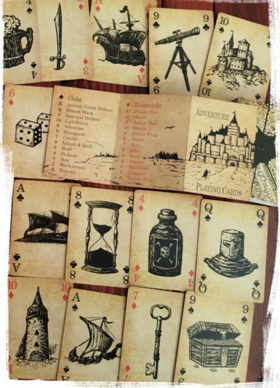 The Witchcraft & Wizardry Playing Cards and Adventure Playing Cards are two 54-card decks, each featuring a unique hand-drawn black-and-white sketch on every card.