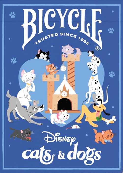 It's felines versus canines with Disney Cats and Dogs Inspired Playing Cards by Bicycle! Disney dogs fills the black suits, while Disney cats control the reds. With an adorable ensemble card back featuring Dalmatians, Nana, Max, Cheshire Cat, and more; you may need to bring a bag of treats to your next game night!