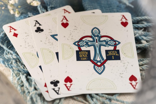 The Card Backs feature an interlinking motif and interweaving stairs that echo the intricate and complex nature of the Hanging Gardens of Babylon.