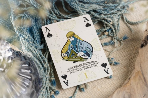 Step into the timeless allure of the Hanging Gardens of Babylon with this exquisite deck of playing cards; a living extension of the ancient myth that has captivated hearts for centuries. Crafted as a tribute to the fabled terraces of King Nebuchadnezzar II, each card pulses with the mystique of a lost paradise, where lush greenery defied the desert and love shaped an empire. Infused with the soul of ancient Mesopotamia, the deck weaves vibrant blues, radiant golds, and verdant greens into designs that echo the artistry of Babylon’s glazed bricks and starlit ziggurats.