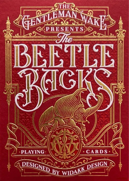 The Beetle Backs, presented by The Gentleman Wake and designed by Widakk Design, is the culmination of a two-year long effort to create a deck of cards perfect for Collectors, Players and Magic Enthusiasts everywhere. Classic and beautiful, evoking turn-of-the-20th-century style and elegance and the finest modern handling and playing card printing techniques, The Beetle Backs also tells the Kafkaesque tale of an embattled entomologist deep in study of his chosen field; the Dynastinae subfamily of scarab beetles.