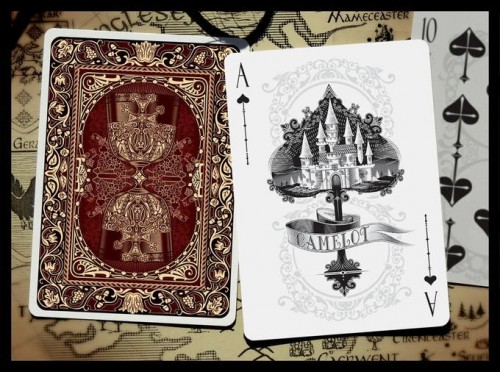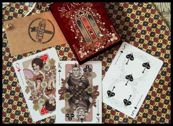 Sir Lancelot is an updated version of Artur Rajch's original 2018 design, using an Art Nouveau style combined with modern illustration and medieval ornamentation. The card back is a visualization of the Holy Grail. The dominant color is vibrant burgundy symbolizing blood and wine. The light gold color of the ornaments and decorative elements symbolizes purity of spirit.