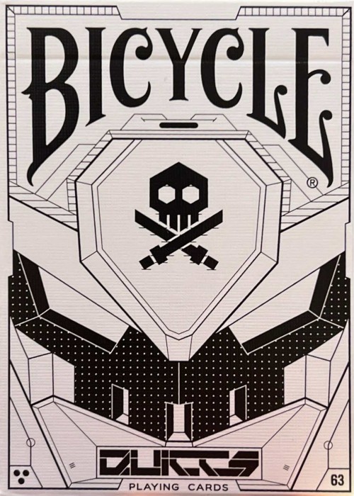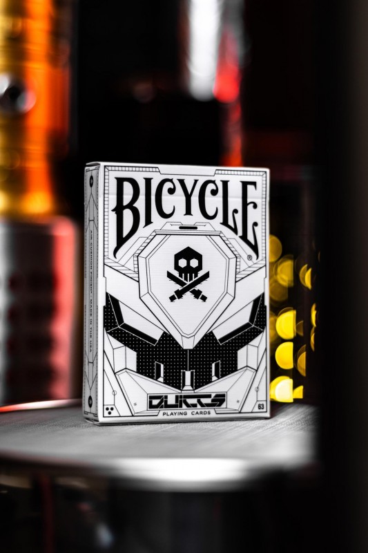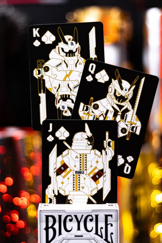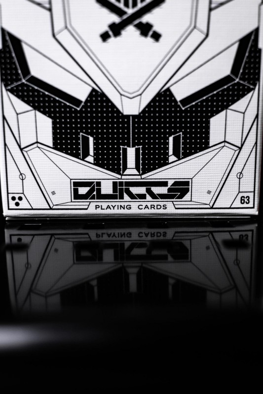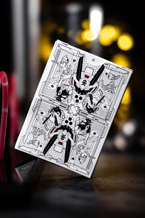 With over 50,000 art toys sold worldwide, Quiccs' characters have become icons in the designer toy scene. This deck pays tribute to the Bulletpunk Universe by translating its most recognizable figures into a traditional playing card format. The result is a blend of familiar structure and a bold new style, where classic court cards meet mecha-street energy. This Ghost White edition delivers a stark counterpart, featuring a striking black face that flips the usual playing card palette. The Jack, Queen, and King cards showcase the ghost versions of TEQ63, Mariko, and Ghost of Kurosawa, each rendered in a mix of Ghost White with accents inspired by OG Blue, OG Red, and Manila Killa. These inverted forms offer a cold, high-contrast take on the originals, bringing a fresh visual punch to every suit.