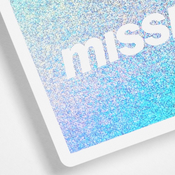 Silk feature glittery silver foil. Size 100%. Premium 300gsm German Black Core Stock, Linen Finish with Glossy Varnish, printed by WJPC.
