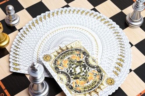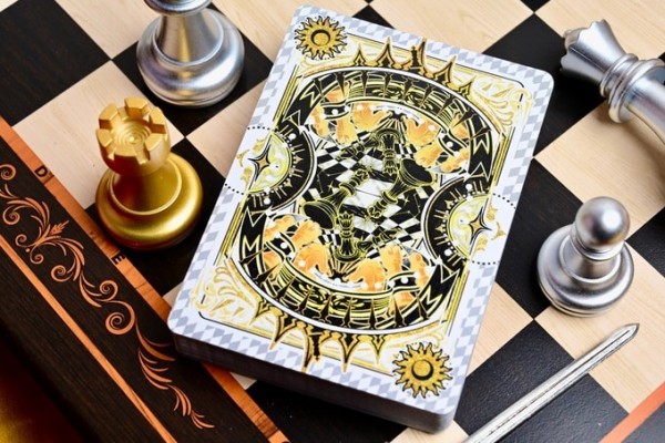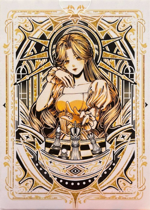 CHESS deck series is set in the 17th-century Baroque period of the Holy Roman Empire, creating a world view of a mirror-interwoven twin royal courts. The White Court is modeled after the Prague Crystal Palace, featuring Rococo-style gilded decorations and colorful glass domes; the Black Court is inspired by the Bratislava Fortress, presenting a dual image of dark red velvet curtains and bronze relief structures in the Gothic style. The two female chess players respectively control the two power systems of light and chaos, projecting a dual metaphor of royal power struggles and theological games in the chessboard confrontation.
