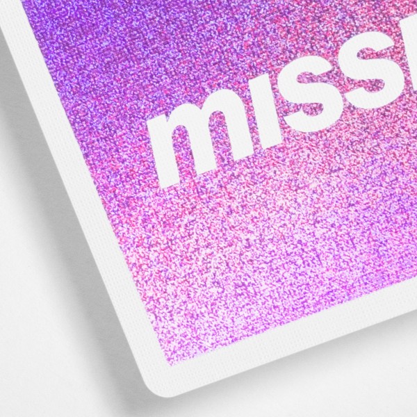 Petal feature glittery pink foil. Size 87%. Premium 300gsm German Black Core Stock, Linen Finish with Glossy Varnish, printed by WJPC.