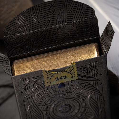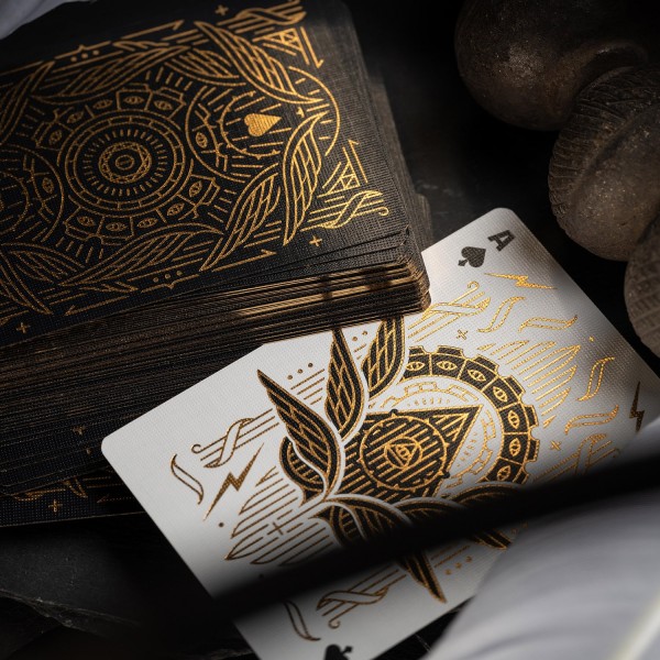- Gold hotfoil on cards, front and back.