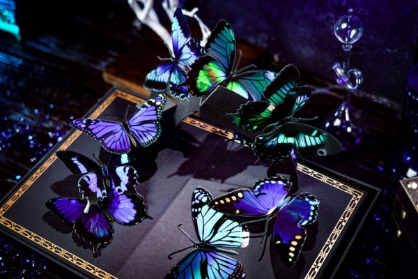 The exclusive Collector's Set is an excellent craftmanship for the Morpho Playing Cards. The box featured an built-in butterfly pattern, hinting on the surprise inside. When you lift the lid, a magical butterfly garden unfolds in three dimensions before your eyes, transforming the simple act of unboxing into a moment filled with romantic ceremony. The set contains 4 gilded playing cards, including the Somnium deck which is available exclusively within the set.