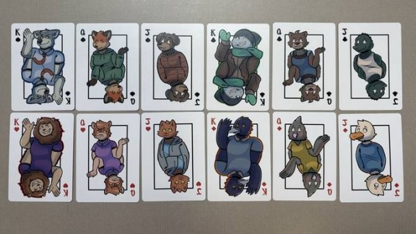 The very first custom deck featuring furry characters designed by Jacky Yu. Each suit features a specific species of animal. Printed by Shuffled Ink.