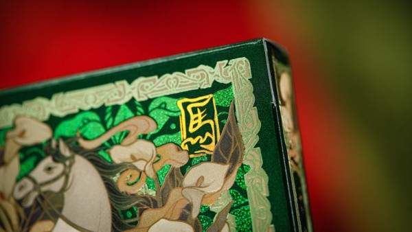 The blend of green and horses is woven into the card design: deep, layered colors form the base, enhanced with embossing and green foil accents, creating a look that is luxurious yet restrained.