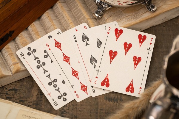 The Jokers in each deck tell a story. When placed side-by-side, the Jokers from each deck form a diptych depicting a scene from the book.