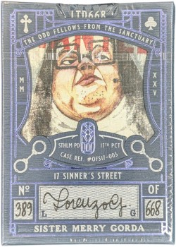 The Odd Fellows from the Sanctuary are the latest additional members of the unusual freaks club by Stockholm 17. The decks feature criminals in disguise of religious people with their heist plan to steal priceless artifact. The Numbers can form a bigger picture of the scheme, and The Courts are heist members. The Jokers and Extra Cards feature the titular character of their respective editions along with the troupe's base of operation. The tuck box is out-of-the-ordinary, yet fits the lore of the series - the cards are tucked in a sleeve which is encased inside a fake imitation metal hip flask. In addition, the cards have their own back design, but the faces remain the same throughout, and the cards already gilded with metallic foil. It is the most thematic Odd Fellows members as of now.