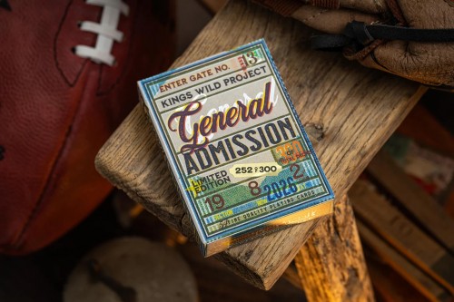 General Admission was originally a deck release from 2020 Kings Wild Project Subscription - inspired from vintage ticket stubs, especially that off baseball match tickets. In 2026, the General Admission comes back with a remastered makeover - the cards are upgraded with holographic cold foil, the back design features an all-new design, the Jokers feature new illustrations - 52+J style with the jester holding ticket stubs, and the tuck box with detailed embossing and foiling along with interior pattern print.