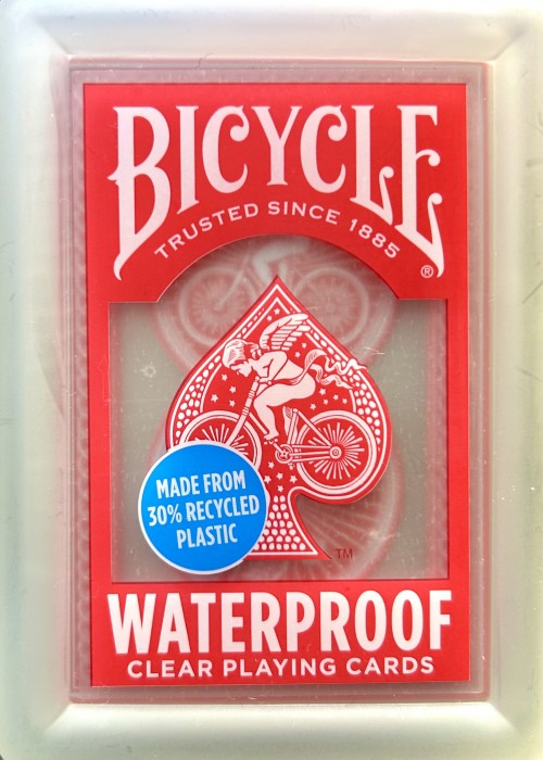 Deck has no tuck, outside of a plastic case. Cards are see through except where the logos are