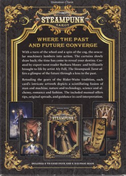 The Steampunk Tarot is a Rider-Waite based deck illustrated by English artist, Aly Fell, and with a companion book written by experienced tarotist, Barbara Moore. The darkly hued cards have a realistic mix of Victoriana, magic and mechanics in the tarot scenes, with tarot cards themselves featuring in several cards.COMPANY:Llewellyn