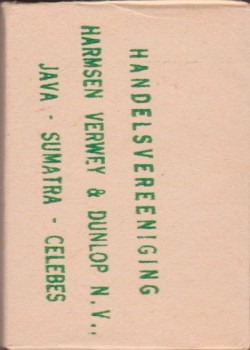 The Packaging: The cards are housed in their original printed paper wrapper. This wrapper is crucial as it identifies the distributor: the prominent Dutch trading company "HANDELSVEREENIGING HARMSEN VERWEY & DUNLOP N.V." (Handelsvereeniging meaning Trading Association). Crucially, it explicitly lists the intended colonial markets within the Dutch East Indies: "JAVA - SUMATRA - CELEBES" (now major islands of Indonesia). The wrapper also features a stylized graphic printed in green, possibly intended to evoke Asian motifs.