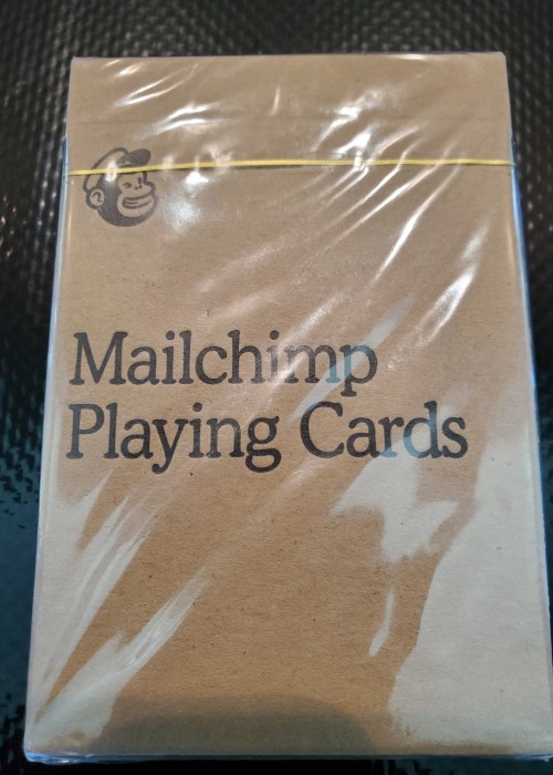 A small production deck to be used internally and for promotion purposes at the company Mailchimp, this deck gained a large group of fans when it was posted on the website dribble and other sites. It was designed and produced by the creative/ad agency Fuzzco promotion company with assistance from Theory11 in early 2014. Possible plans for public availability and a 2nd printing was quickly solidified after the appreciation for this deck was obvious. The 2nd printing was done as a 2nd version in 2 color variations in March 2015 direct from Theory11 with proceeds to support Fugees Family, a non-profit organization devoted to working with child survivors of war. This PCDB entry is ONLY for the ORIGINAL printing for Mailchimp use. https://dribbble.com/shots/1492977-MailChimp-Playing-Cards