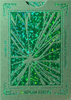 In order to simulate the feeling of a broken mirror, we used the holo foil process on both the front and back of the cards. We simulated a broken mirror on the card backs. The mirror was broken from one place by someone, which caused the mirror to shatter. The card faces are also designed to simulate the shattering of a mirror. This was a very interesting idea and we successfully implemented it.