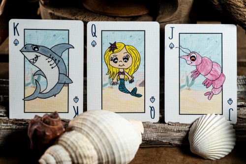 Even the Jokers are cheeky little seashell surprises! Packaged in a colorful hand-drawn tuck box, this limited edition deck is more than just a set of playing cards - it's a little piece of childhood creativity preserved forever. Perfect for family game nights, collectors, or anyone who wants to smile every time they shuffle the deck. Created with love, laughter, and plenty of crayons, Under the Sea is a reminder that the best art comes straight from the heart. By Jackson's youngest daughter, Olive Robinson - Age 7.
