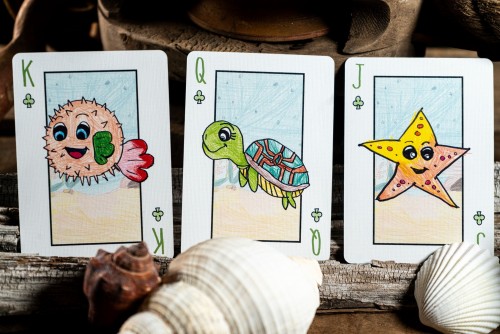 Dive into a world of imagination with Under the Sea, a whimsical deck of playing cards brought to life through the eyes of young artist Olive Robinson. Each card is hand-drawn with joyful charm, full of bright colors, smiling sea creatures, and plenty of underwater personality. Every face cards tells its own story. The deck is complete with all four suits, each one swimming with adorable ocean characters: