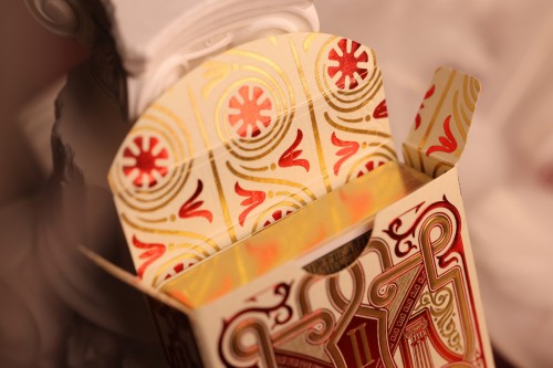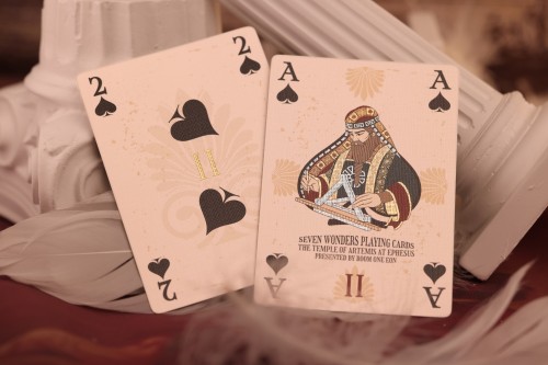The Card Backs feature an interlinking motif and interweaving stairs that echo the intricate and complex nature of the Temple of Artemis at Ephesus.