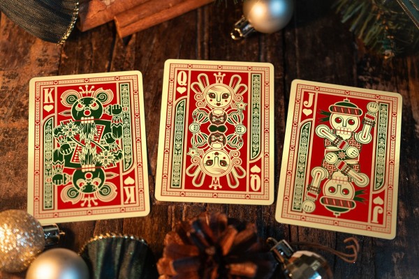 Step into a world of holiday magic with the Nutcracker Deck, a luxurious tribute to the timeless Christmas tale. Every detail has been carefully designed to capture the wonder of the season, from the fully custom court cards inspired by the characters of the Nutcracker story to the enchanting artwork that makes each hand feel like a scene from the ballet. The tuck box glistens with elegant gold foil, adding a festive shine that looks as beautiful on display as it does in hand. Perfect for collectors and players alike, this deck brings both artistry and functionality to the table. Whether you’re shuffling on Christmas Eve or gifting to a loved one, the Nutcracker Deck is the ultimate holiday keepsake—one that brings joy and tradition to every game.