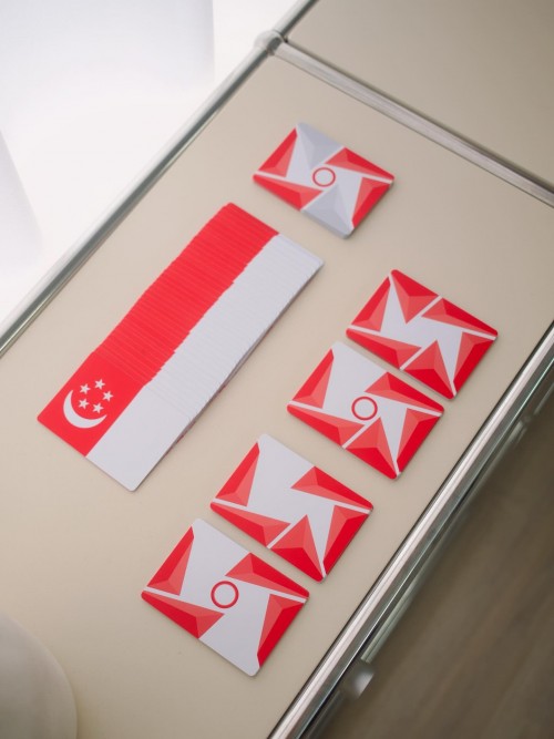 The Virts invite you to celebrate Singapore's 60th independence with The Virtuoso P1 Singapore Playing Cards. Painted in the red and white of the Singapore flag, the Virtuoso P1 SG’s design begins with a bold crimson circle at its center - A tribute to our nation’s nickname, the “Little Red Dot”. Surrounding it is our three-dimensional PRISM back, now extended to the very edge. It's back design connects with the elements on the front side - symbolizing how the people of Singapore comes together. And the best part - the red parts on the front creates the special feature of which how the deck came to be: every deck comes with Singapore protrait flag - place that card on the top of the faces, spread the deck, and you can form the Singapore flag!