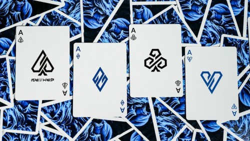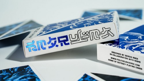 Feel the Universe presents a brand new Odyssey Playing Cards in collaboration with French "Futuristic Paintings" painter Nishe Anais Sardou. It is a fusion between Sergio Roca's iconic and signature design style of the Odyssey combined with Nishe's blue wave painting on the back design. The Courts feature the classic royals with semi-shiny metallic blue ink.