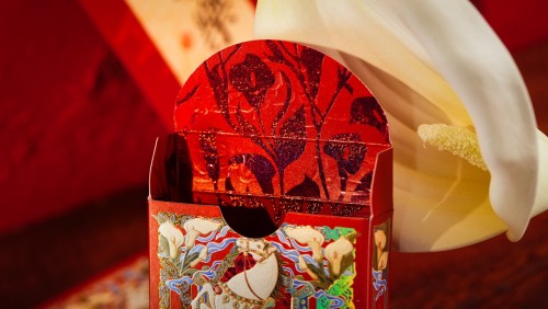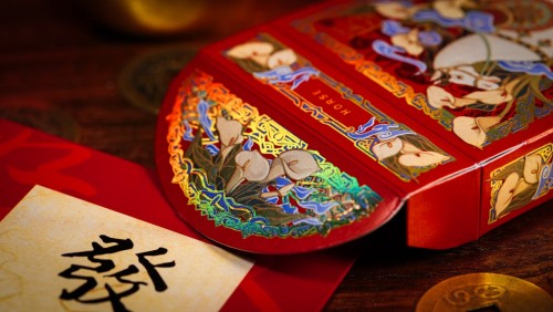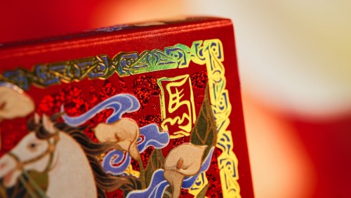 Hot foil stamping and embossing intertwine as horses, auspicious clouds, and floral motifs unfold in layers, shifting with the light to reveal a restrained yet refined sense of luxury.