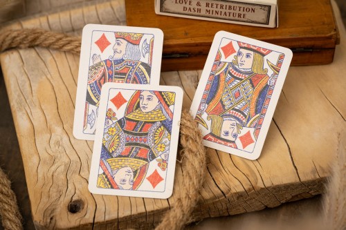 Chunky pips, index-free face cards feature in the Dash mini deck. Antique courts, true to the era & redrawn by hand, with tasteful vintage printing textures added to enhance the look.