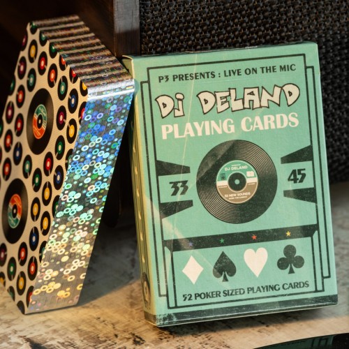 This is an ultra-limited Gilded edition of the DJ DeLand Playing Cards, remixing classic card design with a bold vinyl-record aesthetic and ingenious hidden markings with gorgeous holographic foil edges.