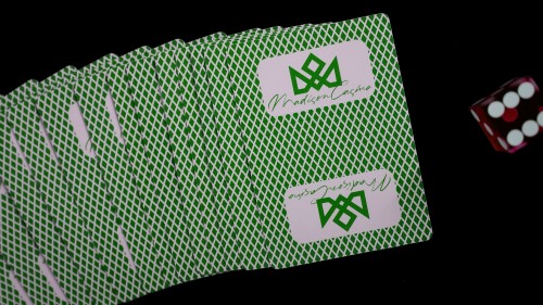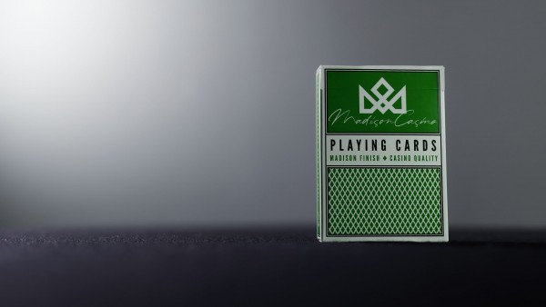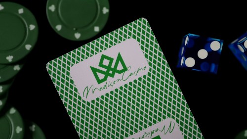 MADISON SHARPS is designed to imitate the classic look of poker playing cards commonly found on casino tables. The design is a two-way logo on top of full-bleed pattern. The deck also includes Poker Hand rankings guide.
