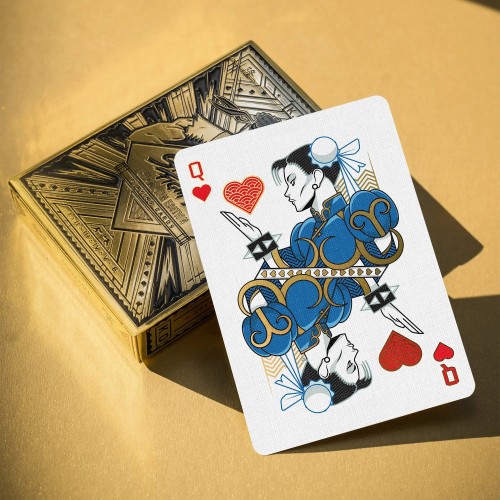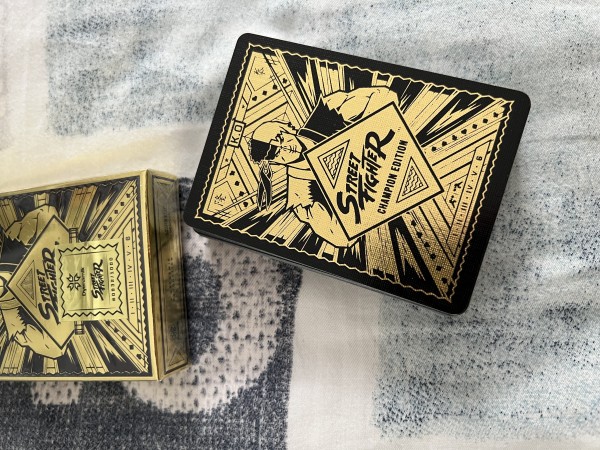 For the Street Fighter loyalists and franchise fanatics, we've created a special Edition of the deck - Street Fighter Champion Edition; only 1000 decks, etched in gold. Encased in our most luxurious box yet, each face card has a bespoke character illustration finished with shimmering gold details. Deep black line works pops against a golden film - In its reflection, you'll find a true champion, worthy of the prize.