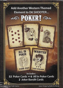 Deck compliments the Tiny Epic Western board game. Unique suits are hats, horseshoes, steer skulls, and tipis. Courts are asymmetric characters from the game.