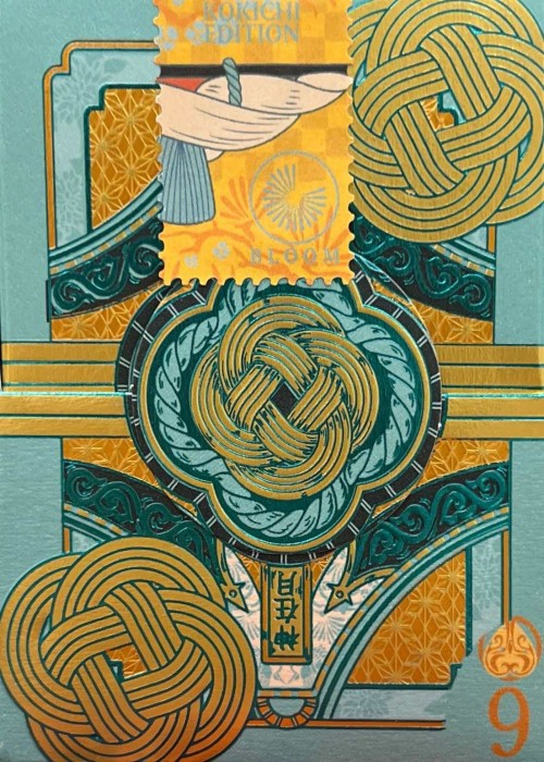The card back design is a masterful fusion of two potent motifs: the sacred shimenawa rope, representing the binding connection of en (fate), and the protective form of the omamori knot (御守結び), symbolizing the blessing and guidance offered by the divine. This hybrid design creates a "Knot of Fate" centered on each card, flanked by two omamori knots from the corners of the cards. When fanned or flipped, the deck performs its own magic. The intricate corner omamori knots appear to spin and whirl to life. This creates the mesmerizing illusion of an endless sacred bond connecting all. It brings to life the very essence of the Month of the Gods, where every shuffle becomes a ritual, and every deal is guided by the threads of divine connection.