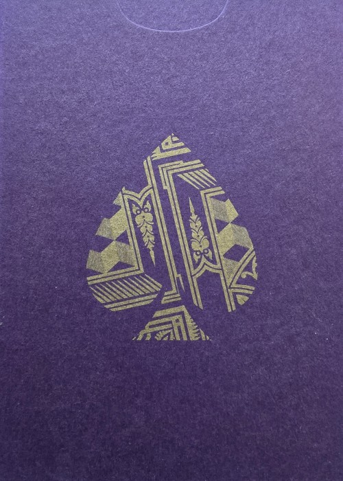 Printed in 1100 unnumbered copies, it has gold and silver metallic inks on both the face and back sides.