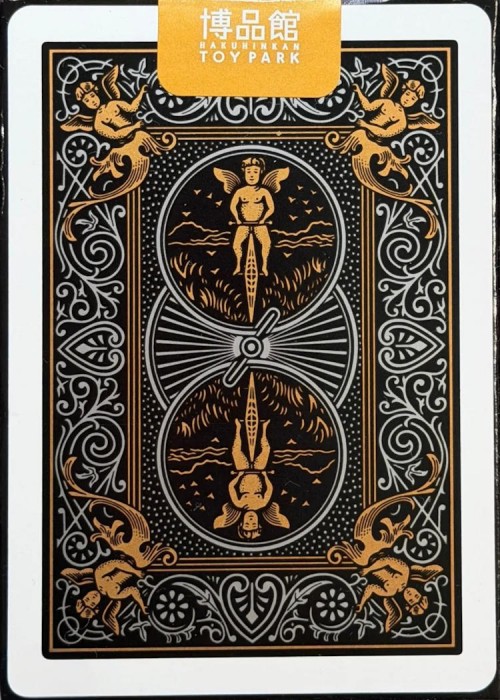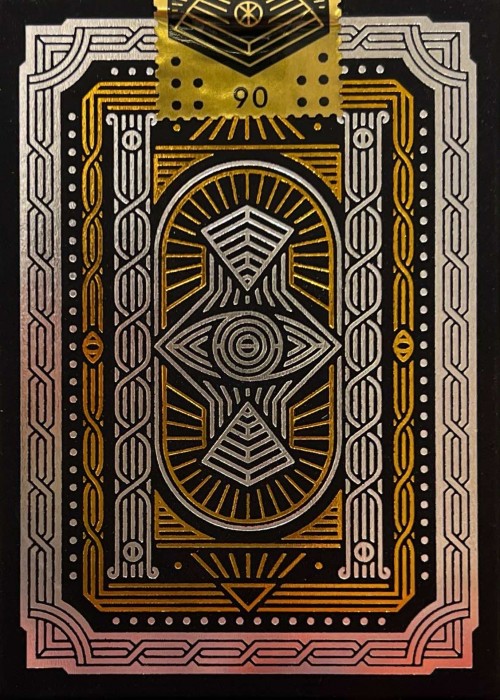 The tuck box is made of matte navy blue with metallic silver hot foiling. The cards are printed by USPCC - featuring pure silver metallic ink on the artworks.