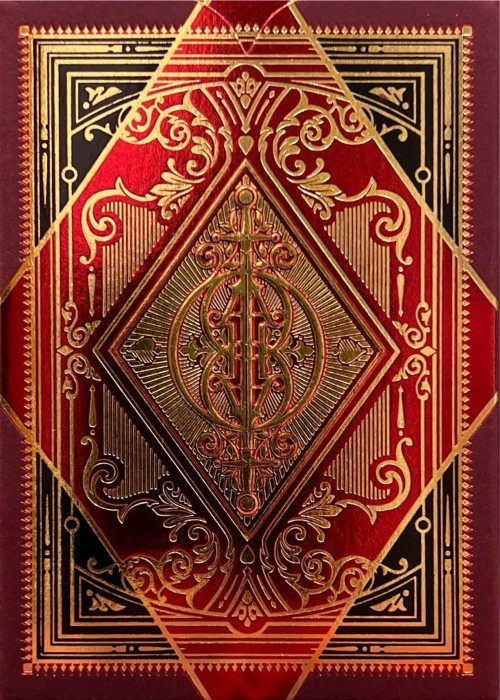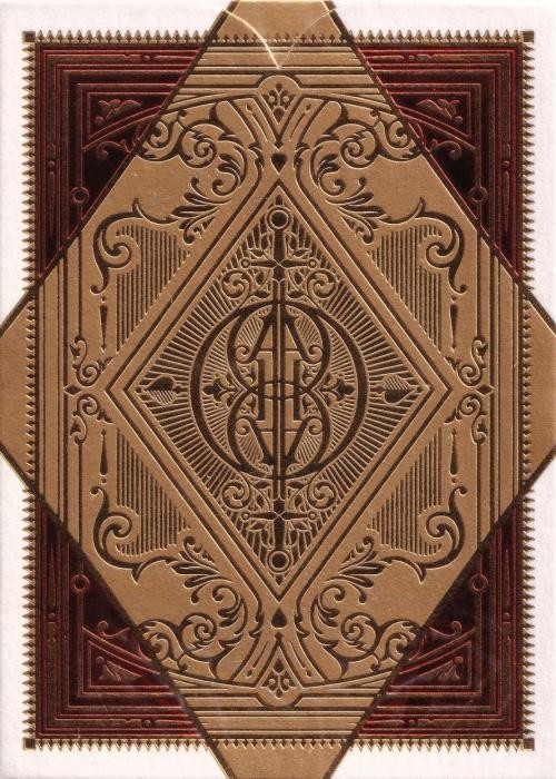 Fragmenta Test Print Deck which is essentially the same as the Fagmenta Deck but has different colors on the courts, the aces and slightly on the back. It also has very good handling but not as great as the official edition. Comes in a matt purple tuck with gold printing.