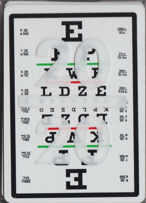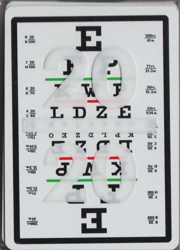 Inspired by the simple and graphic design of a traditional eye test chart, the 20/20 deck features a fun line up of quirky court cards, full of vibrant color and life. The 20/20 playing card decks are designed in a way that makes the cards a joy to look at and also very usable for any type of card game.