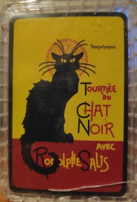 This is a deck of French playing cards from Paris based on a print of the famous artist/ poster artist - Toulouse Loutrec. The graphics on this deck of cards are in the French style.