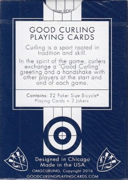 The sport of curling takes place on specially prepared sheets of ice, but curling is more than a game. It is a club, a network of friends new and old. Curling is camaraderie, sportsmanship, and competition. It is hand shakes, broomstacking, bonspiels, loud pants, and shiny pins. Both curling and cards are ageless, timeless, and a great way to bring people together!